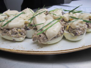 Los chipirones rellenos con pisto y aceite de perejil siempre triunfan en los cursos de cocina en Zaragoza de La Zarola. Atrévete con una receta sencilla